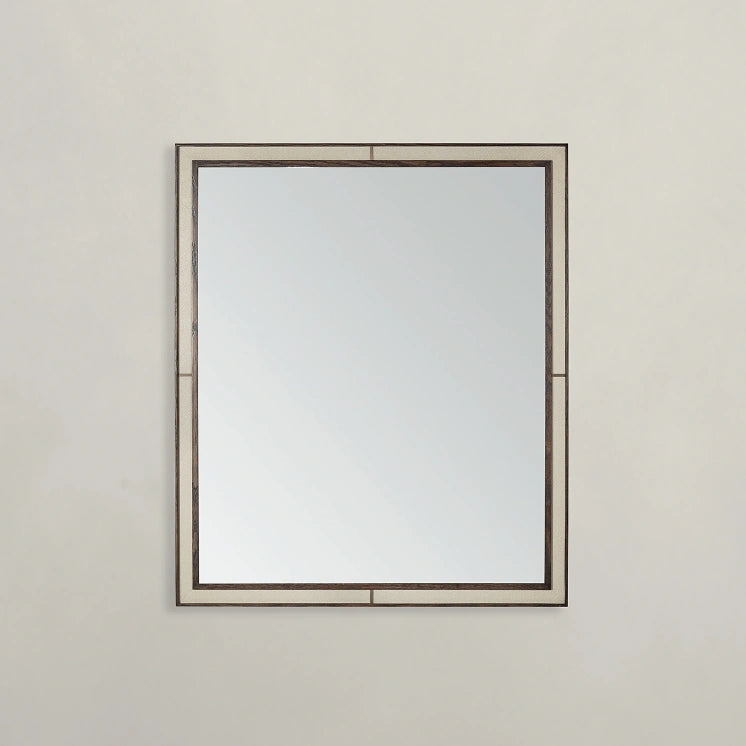 Finished in: Dark brown oak frame with pearl faux shagreen.