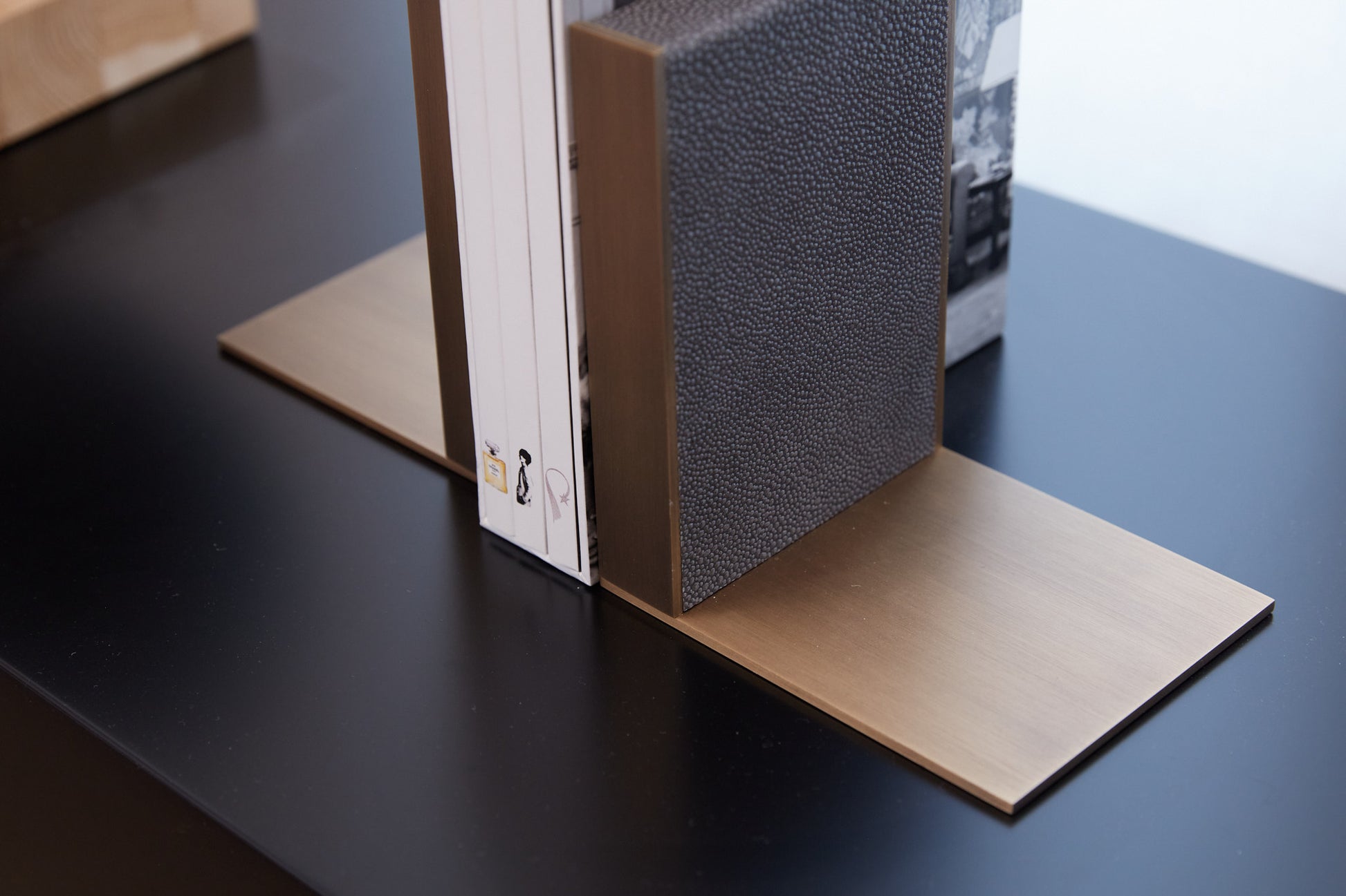 Our Brass Bookends offer a luxury dressing option for any interior. They are available in Charcoal Shagreen with an Antique Brass finish.