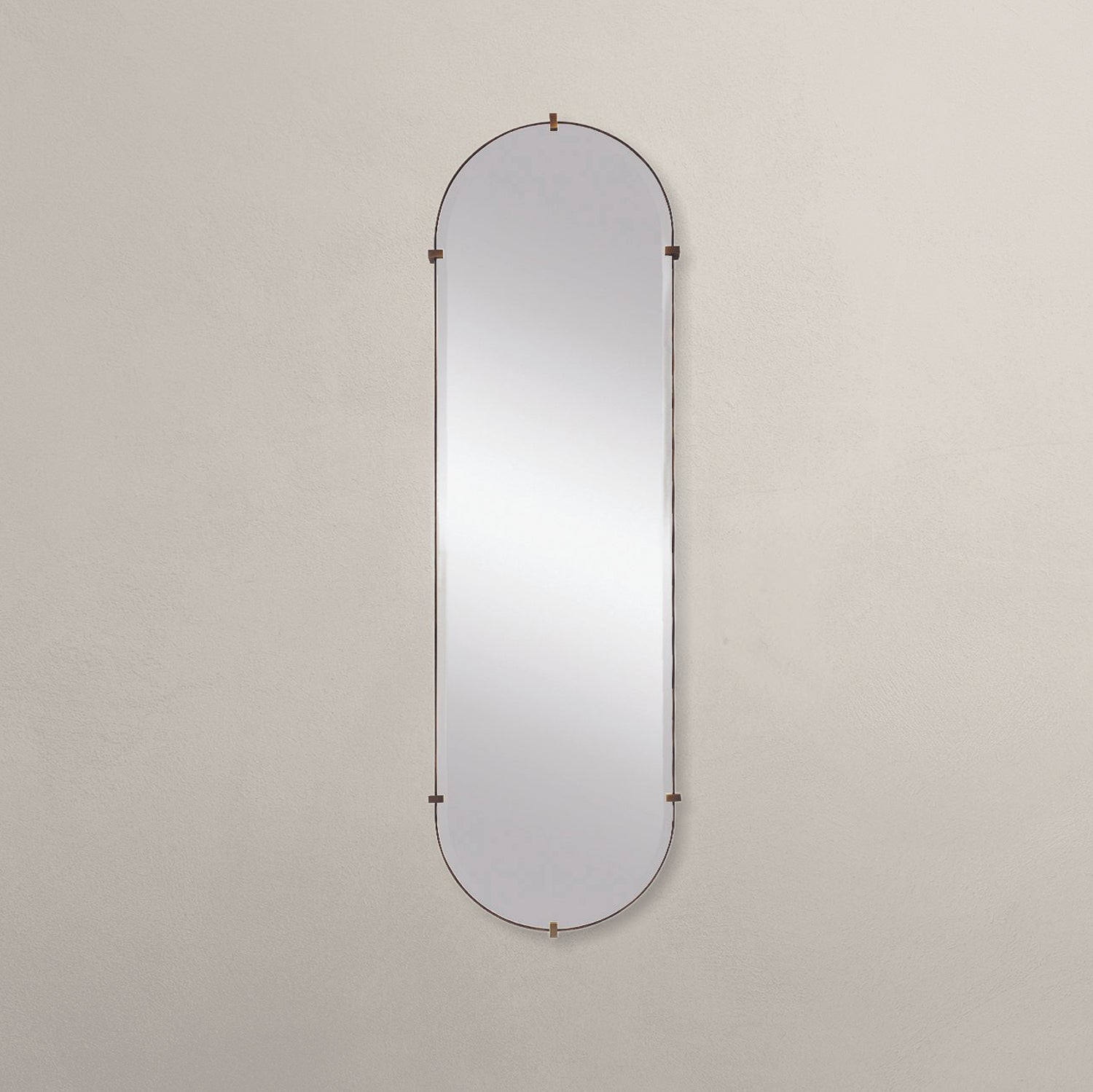 Featuring a slender dark walnut profile, complemented by accent brass bronze clips and a bevelled mirror, the Bryanston stands as a unique and timeless piece, exuding charm and character.