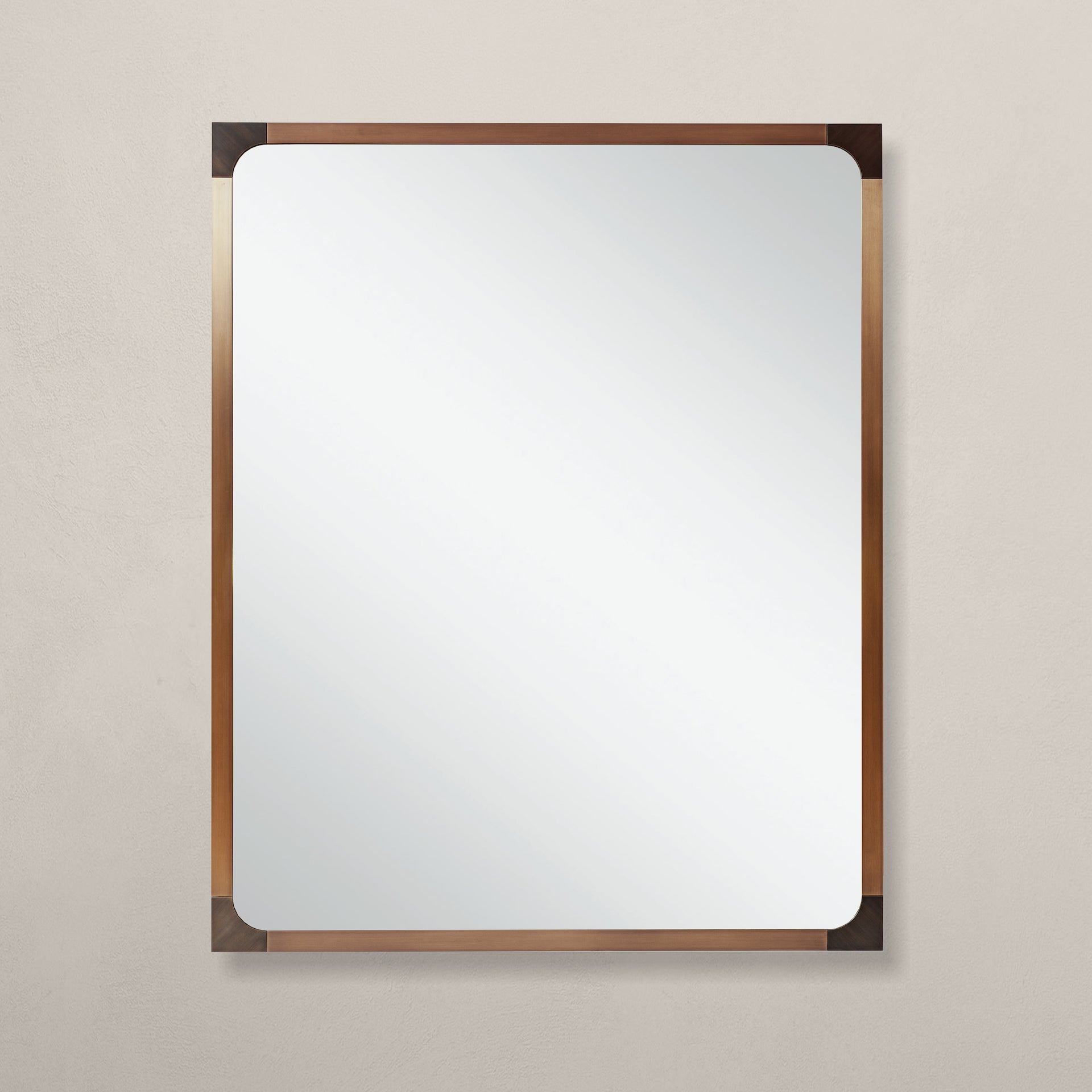 Featuring a slender antique brass frame with accent details of brass bronze on each corner, the Florence mirror is a timeless addition to any interior.
