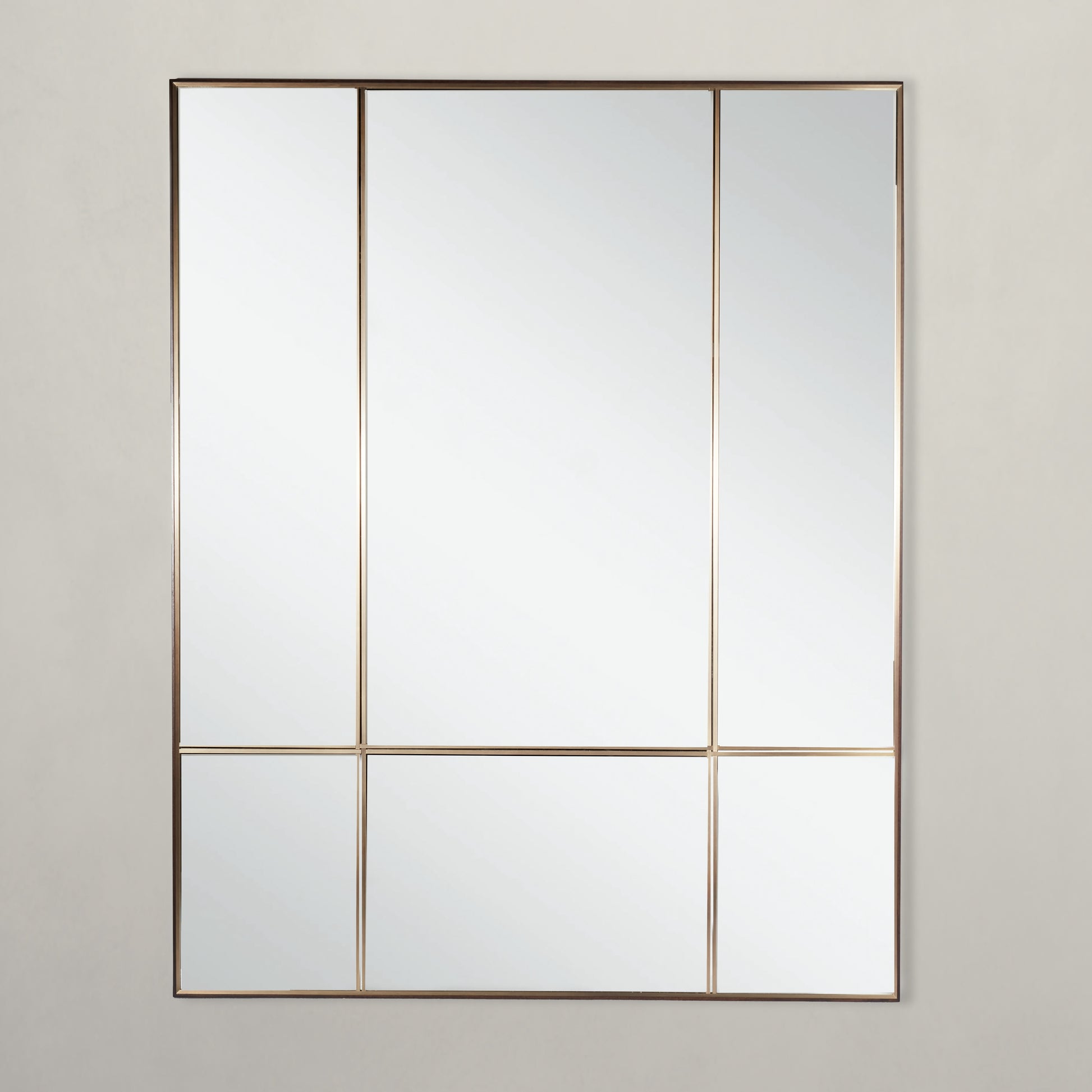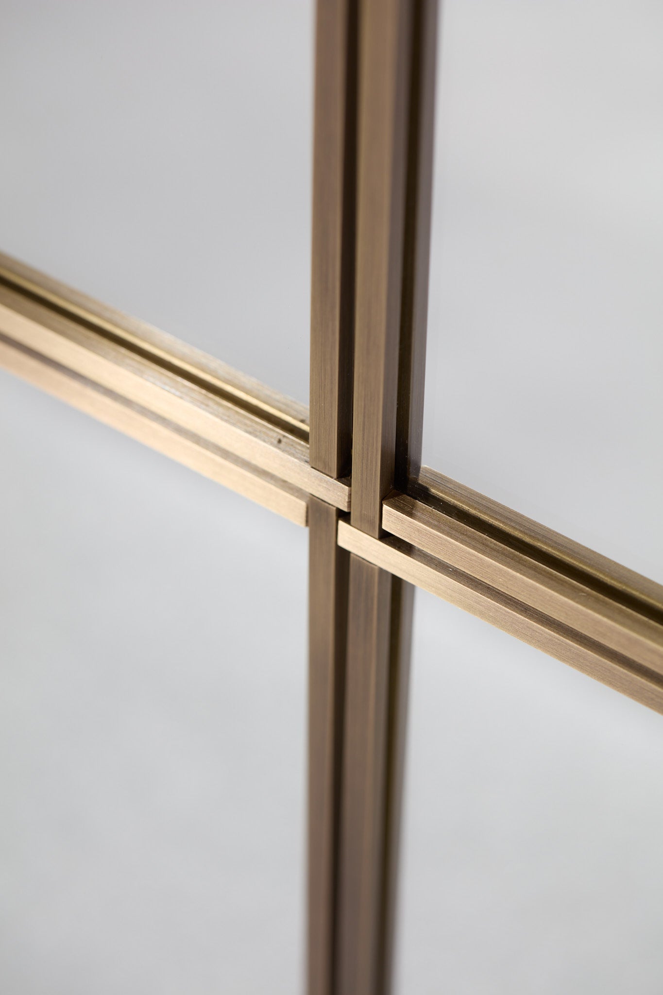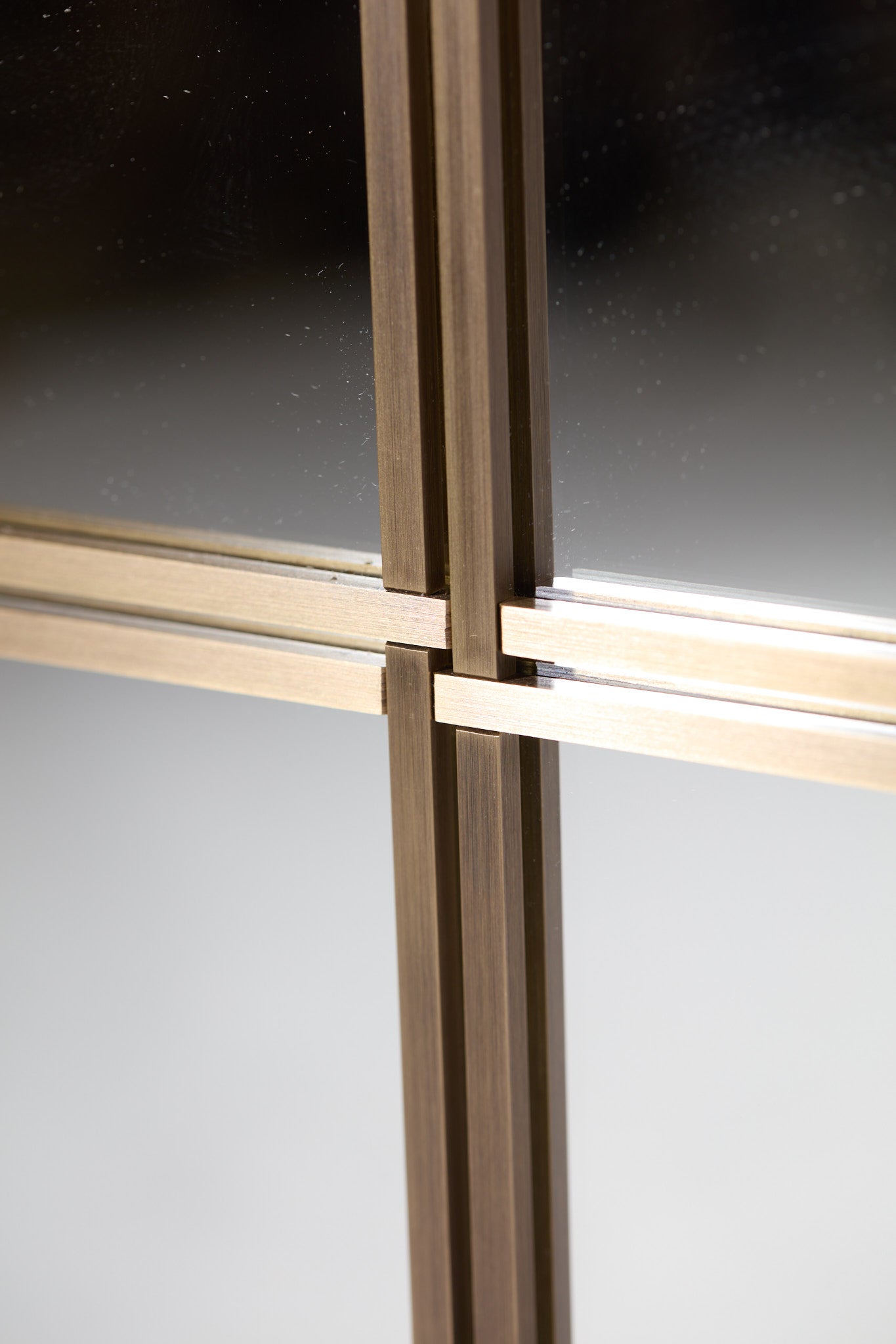 The Galway design features a central silver mirror surrounded by a delicate walnut frame, with antique brass details laid in a woven knot design.