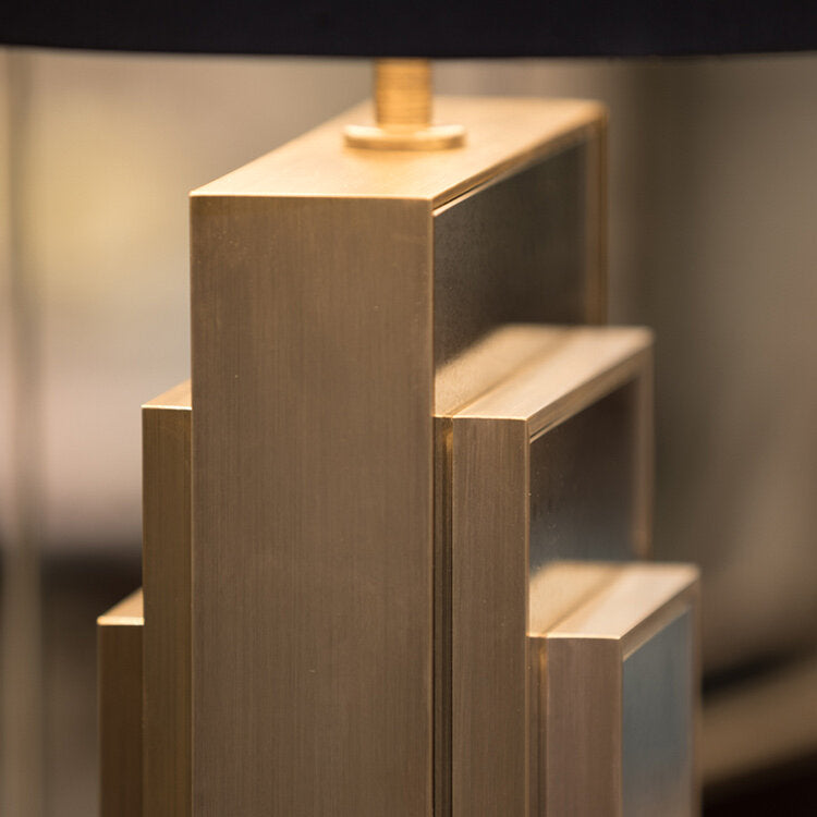 Inspired by the Art Deco era, the Gatsby Table Lamp combines Bianco Nero antique mirror with stepped antique brass detailing, offering a striking modern interpretation of this statement Deco design.