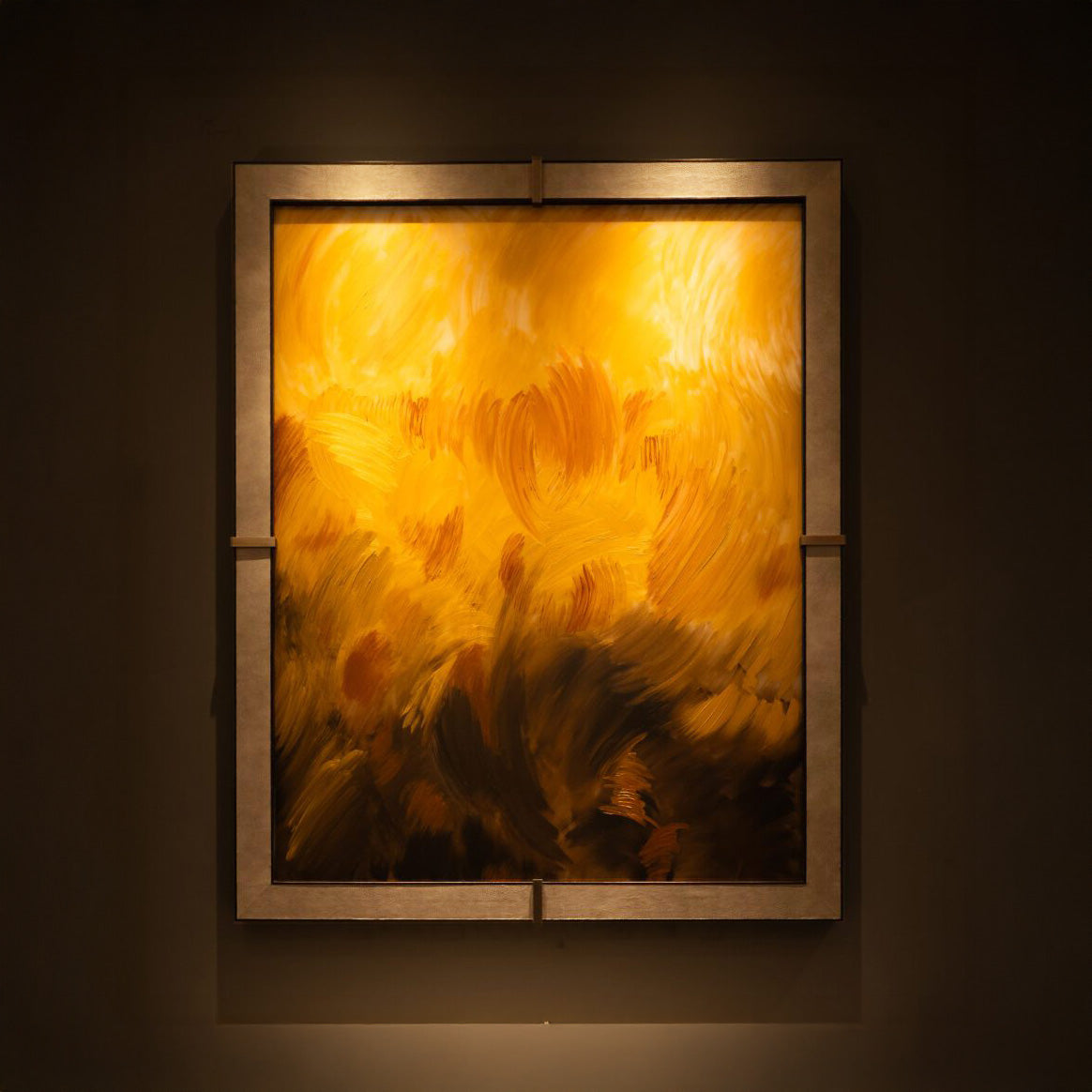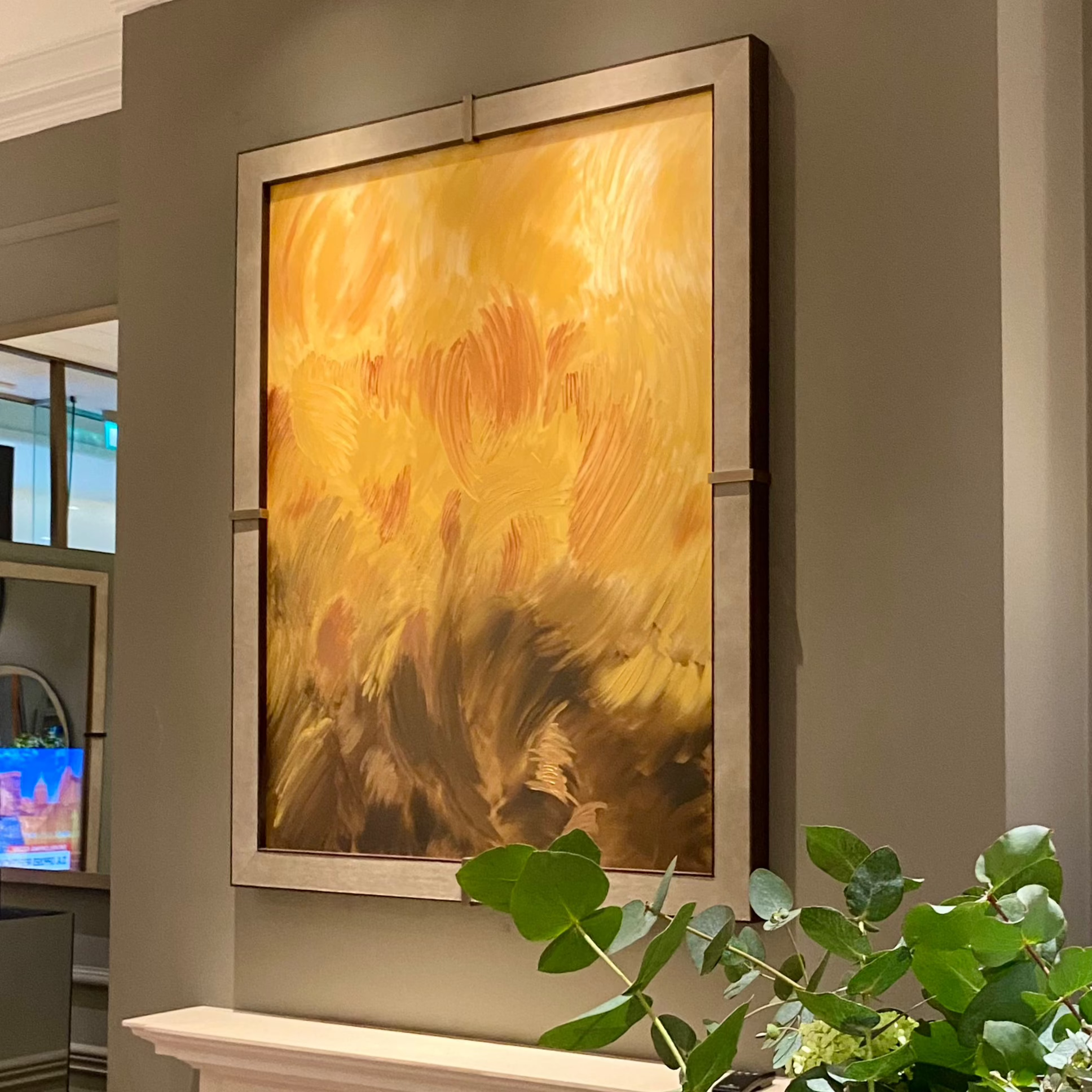 This is an original concept, designed in partnership with Equippd, features integrated lighting technology. It can be fully synchronised with leading smart home systems or enjoyed as a standalone piece. The artwork is supplied with an intuitive remote control and professionally installed by our expert team.