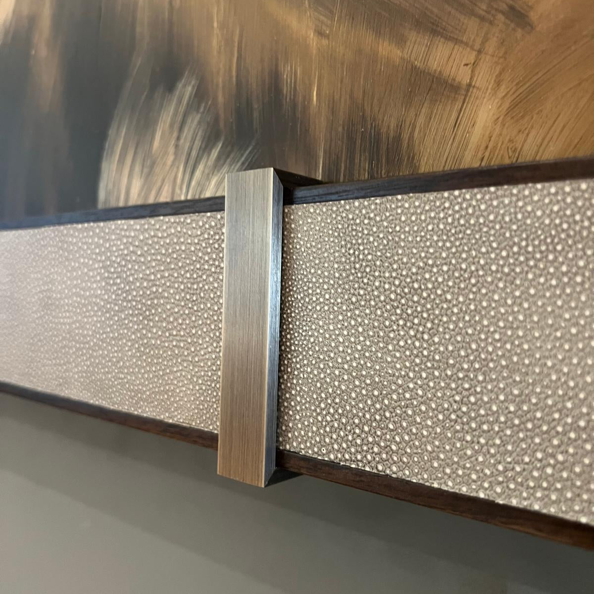 Framed in walnut and shagreen, handmade in our Essex workshop and finished to the same exacting standards as our furniture and mirrors. Tailor the frame with your choice from our library of handcrafted finishes.