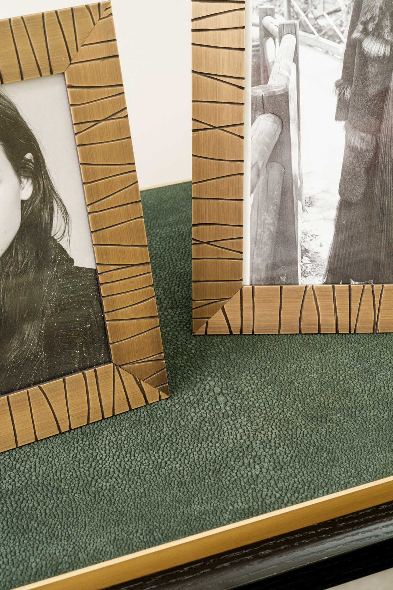 The Venice picture frame boasts a slender antique brass frame with hand-etched details, crafted by artisans in our workshop upon order, ensuring each piece is unique.